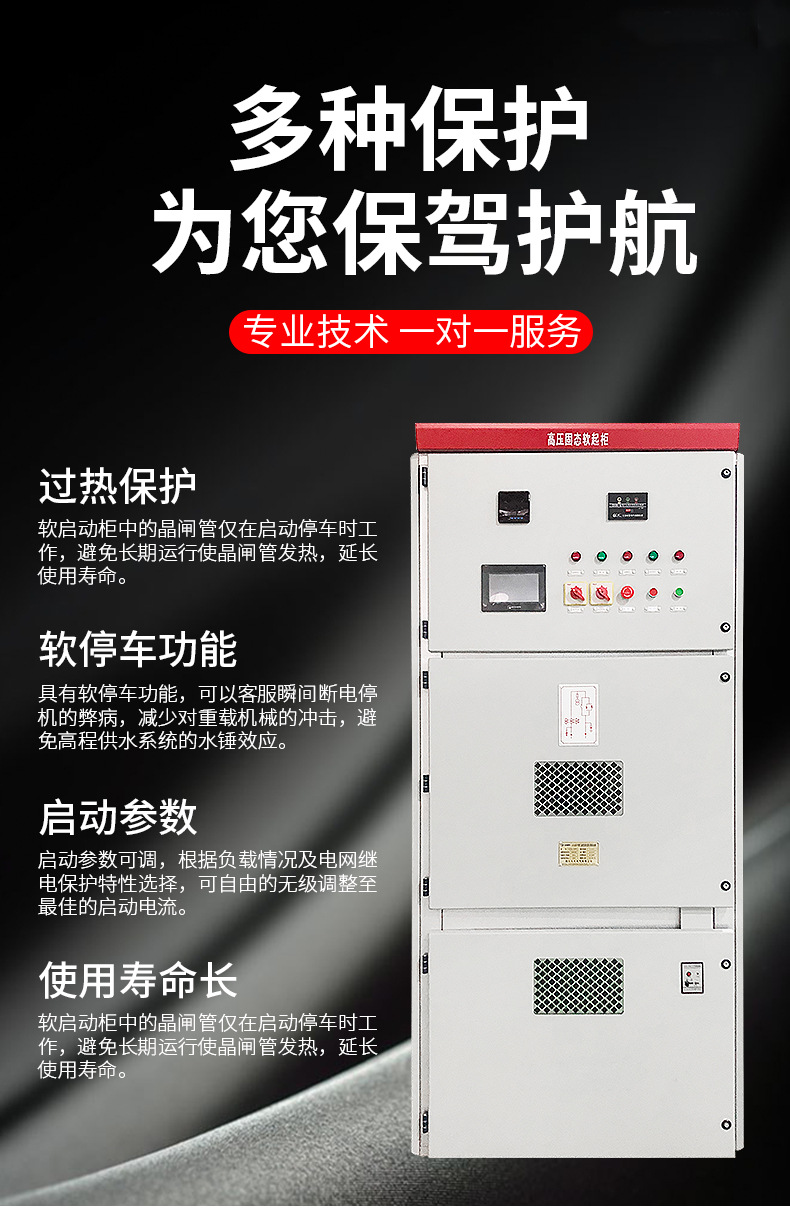 高壓固態軟啟動柜其優點在于晶閘管具有調節快速性好,閉環控制,控制方式的菜單化等優點;而且體積小,結構緊湊,維護量小,功能齊全,菜單豐富,啟動重復性好,保護周全。......