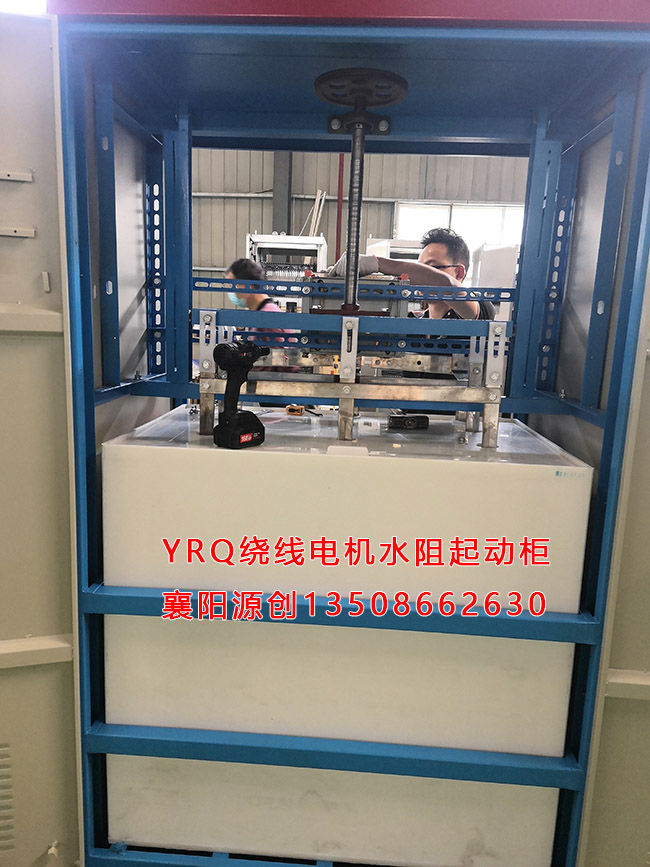 水阻柜是在電機定子回路中串可變液體電阻的一種降壓起動方式,即隨著主電動機的起動,裝置自動改變液體電阻動、定極板之間的間距,使電阻線性均勻減小,電機端電壓均勻提高的一種起動方式。