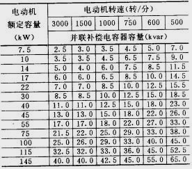 對于用量最多的每分鐘1500轉(zhuǎn)和3000轉(zhuǎn)的電機用額定容量(kW)30%士0.5(kvar)的估算方法,可迅速簡便地求出所需補償電容的容量。以30kW電機為標準,如果電機容量小于30kW的每臺增加 0.5kvar。容量大于30kW的每臺就減少0.5kvar。